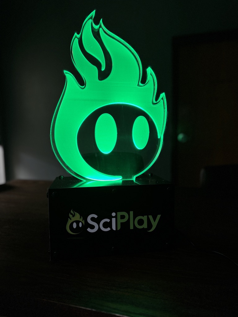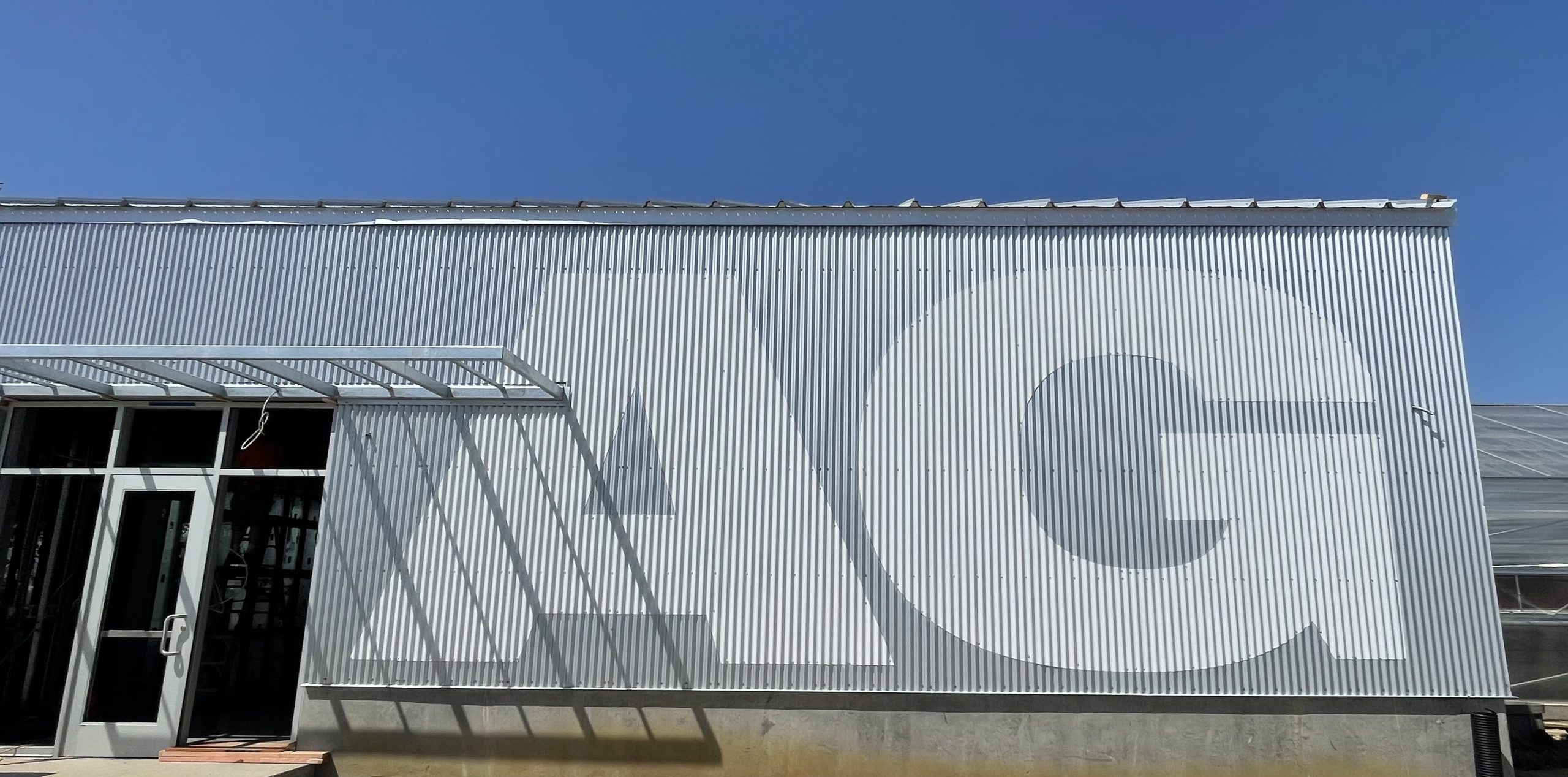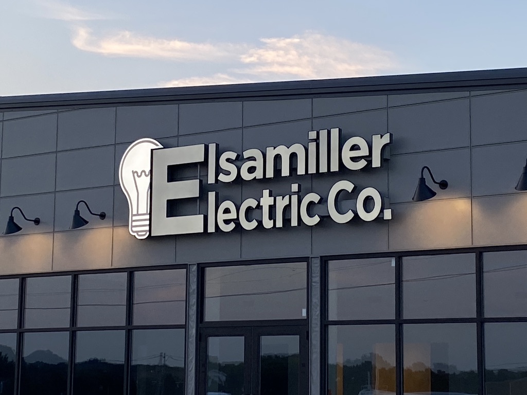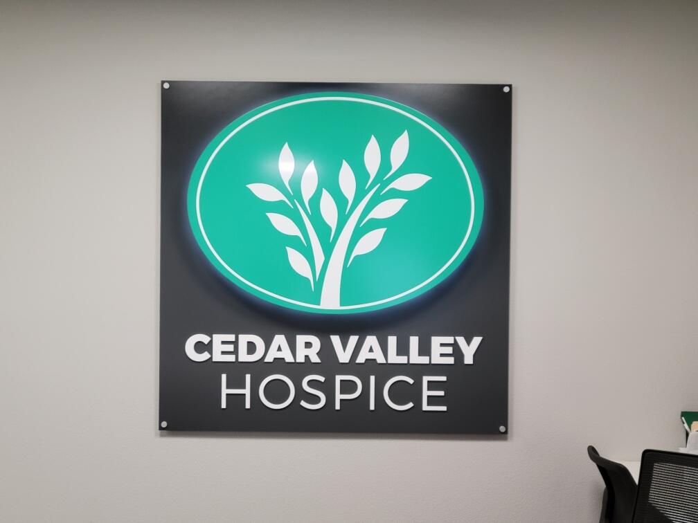 Stud mounted internally LED backlit logo with cut aluminum with stud mounted letters.